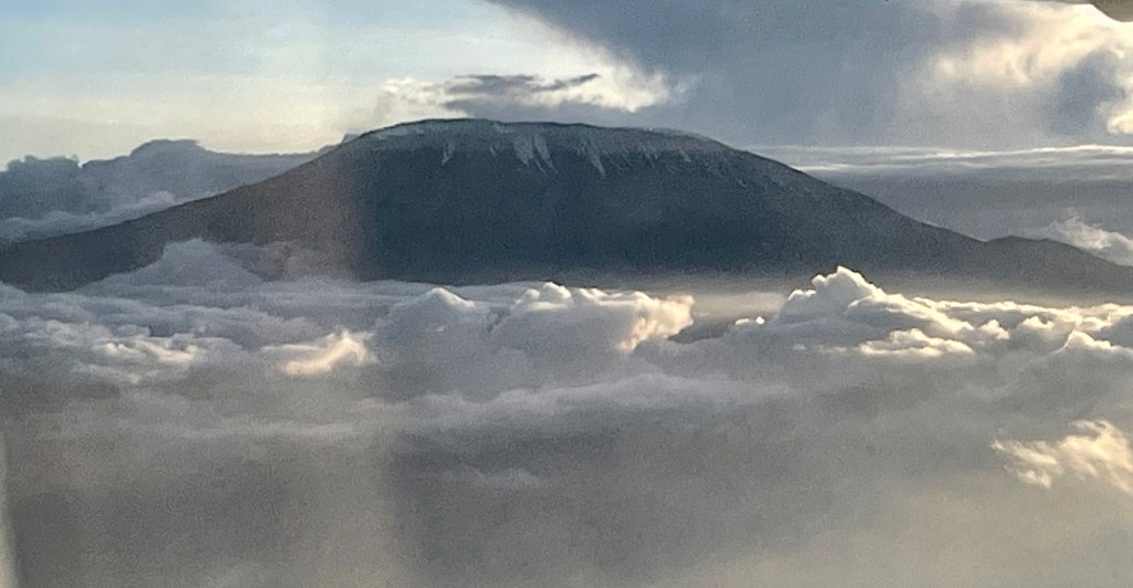 Na letišti panuje obrovský zmatek, letiště je malé a nápor cestujících obrovský. Letíme do Nairobi a jsme odměněni pohledem na Kilimanjaro.