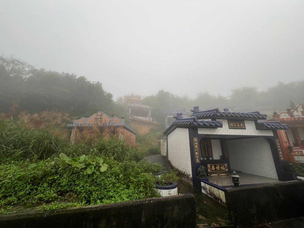 Už nás ty ochutnávky všelijakého želé, čaje a rybích produktů nebavily, tak jsme si udělali procházku kolem “chatiček”. V tom šeru a mlze Ondra viděl chatičky, ale byl to hřbitov.