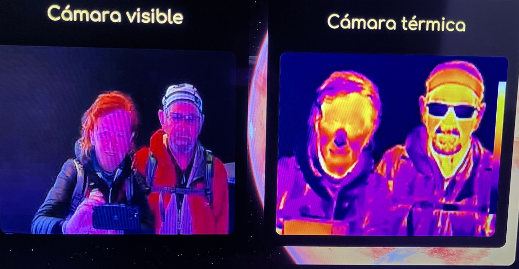 Zastavujeme v Návštěvnickém centru, kde v rámci interaktivní expozice vám přiblíží práci jednotlivých observatoří. Je tu dost vysoké vstupné a pro laiky jako jsme my dva asi zbytečná návštěva, hodně věcí jsme nepochopili, tak jsme se alespoň trochu pobavili focením termokamerou.
