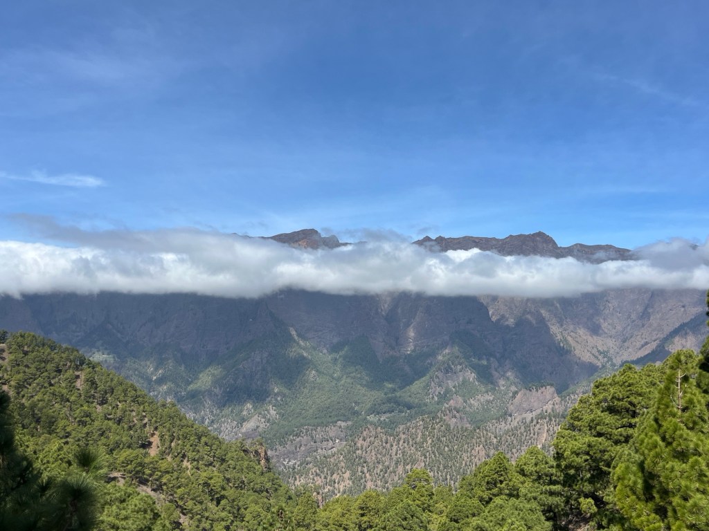 4.3.2024 Na dnešek máme zarezervovaný vjezd na vyhlídku La Cumbrecita. Je zde pouze 20 parkovacích míst, takže stání se musí rezervovat předem. Z vyhlídky je nádherný výhled na calderu de Taburiente.