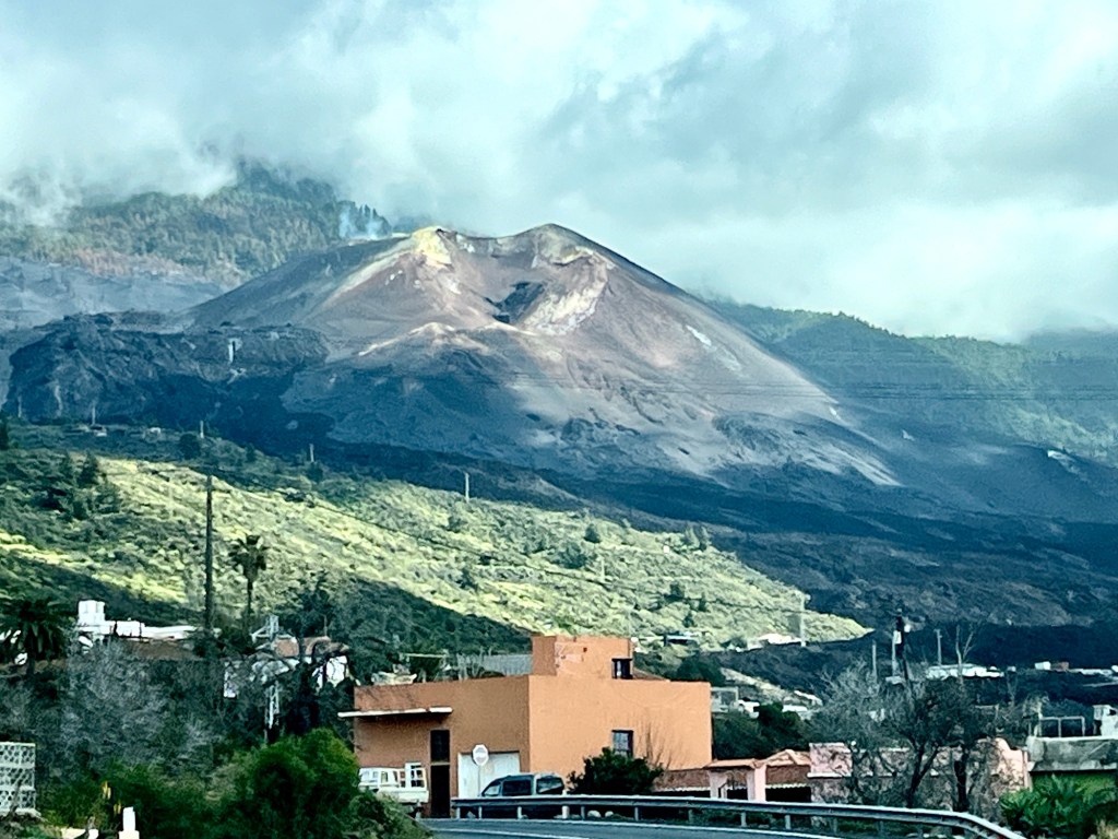 Odsud pokračujeme na západní pobřeží podívat se na sopku Cumbre Vieja, která na podzim toku 2021 soptila 12 týdnů a zničila 1650 budov, láva pokryla 1220 hektarů půdy, naštěstí nikdo nepřišel o život.