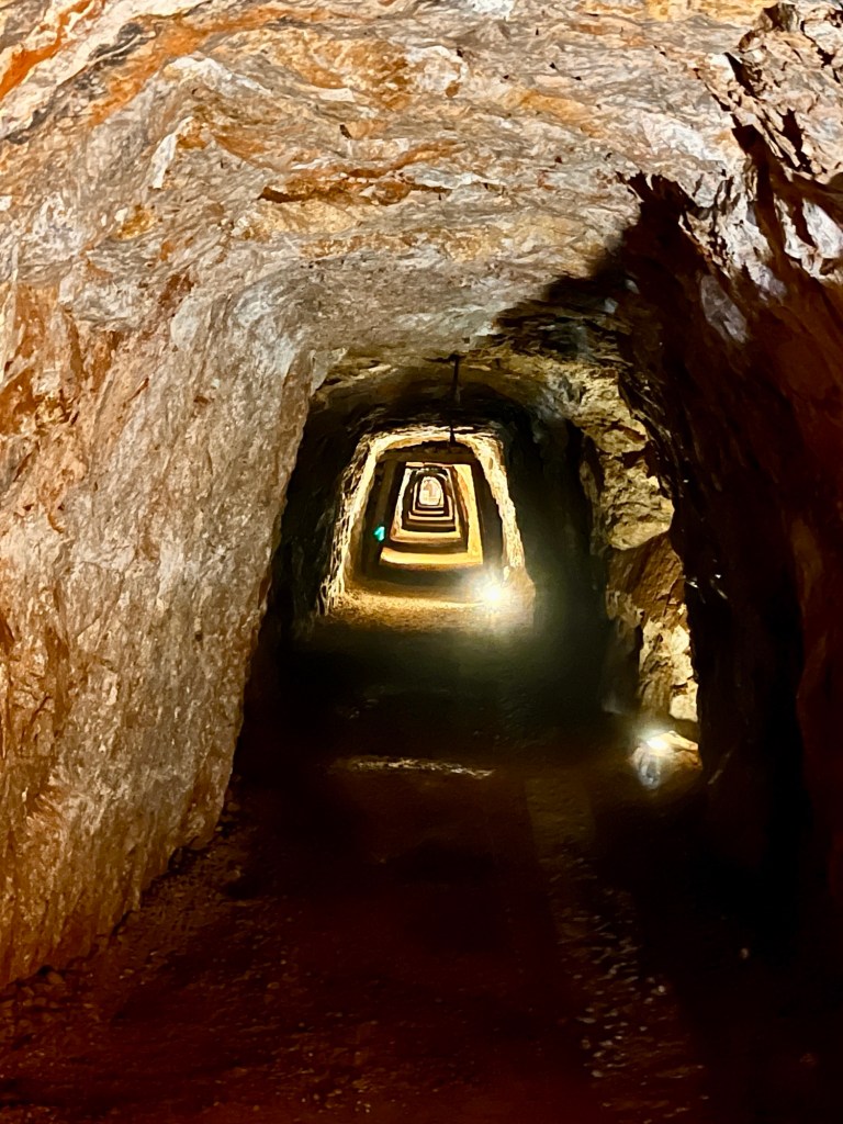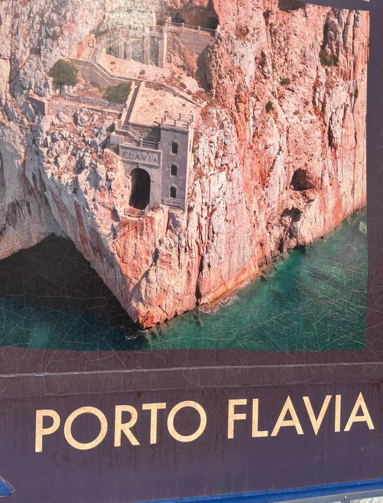 Pokračujeme do Porto Flavia – přístav vytesaný ve skále kudy se dopravovala železná ruda přímo na lodě.