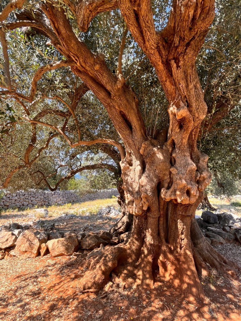 24.6.2025 Na severu ostrova Pag je oblast s velmi starými olivovníky, nejstarší je údajně 2000 let starý. Ondra vtipkuje, že ho pomáhal sázet, kámoška na to, že ho chodila zalévat – pobavili oba 😀