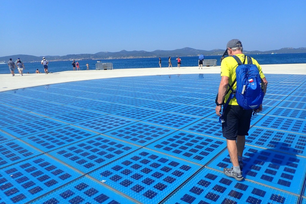 20.6.2025 Tak jsme se přece jen do Zadaru dostali, dnes autobusy jezdily bez problémů. Historické centrum je jako kamenný labyrint s obchůdky, kostely a sem tam kopečkem zmrzliny. Mořské varhany hrají víc do větru než do not, nějak nešly vyfotit, ale mají své kouzlo. A Pozdrav Slunci? Skvělý nápad – jen bychom ho ocenili víc po západu slunce, než v pravé poledne. Tak pěkně všechno zdokumentovat z věže katedrály a rychle zpět na pláž.