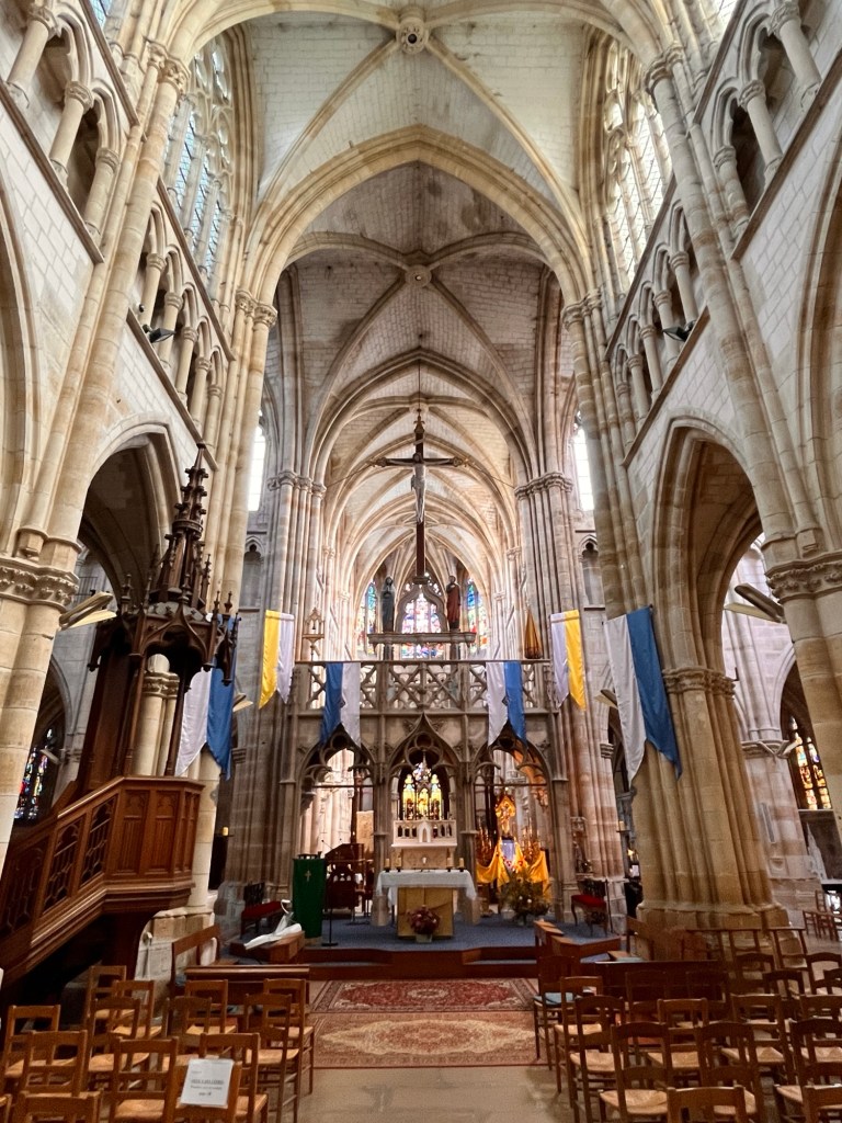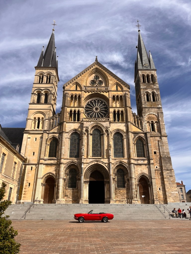 Pokračujeme dále a před námi se vynoří krásná katedrála. Rychle kouknu do mapy a opět zavelím k zastavení /nejsem velitelka, ale můj itinerář cesty a občasné odbočení řidič respektuje/. Jsme v městečku ĹÉpine a zdejší katedrála je na seznamu UNESCO. Je to pro nás obrovský zážitek – pátek dopoledne, nikde nikdo a katedrála je otevřená.