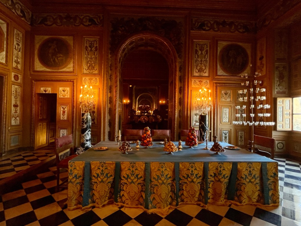 Vyfasovali jsme audioprůvodce, který v jednotlivých komnatách přehrával scénky z historie. Třeba v pracovně hovořil Fouquet se svým architektem, který ho ujišťuje, že to bude stavba a zahrada jakou ještě nikdy nikdo neviděl. Architekta nakonec pro sebe najal Ludvík XIV, aby mu navrhl Versailles.