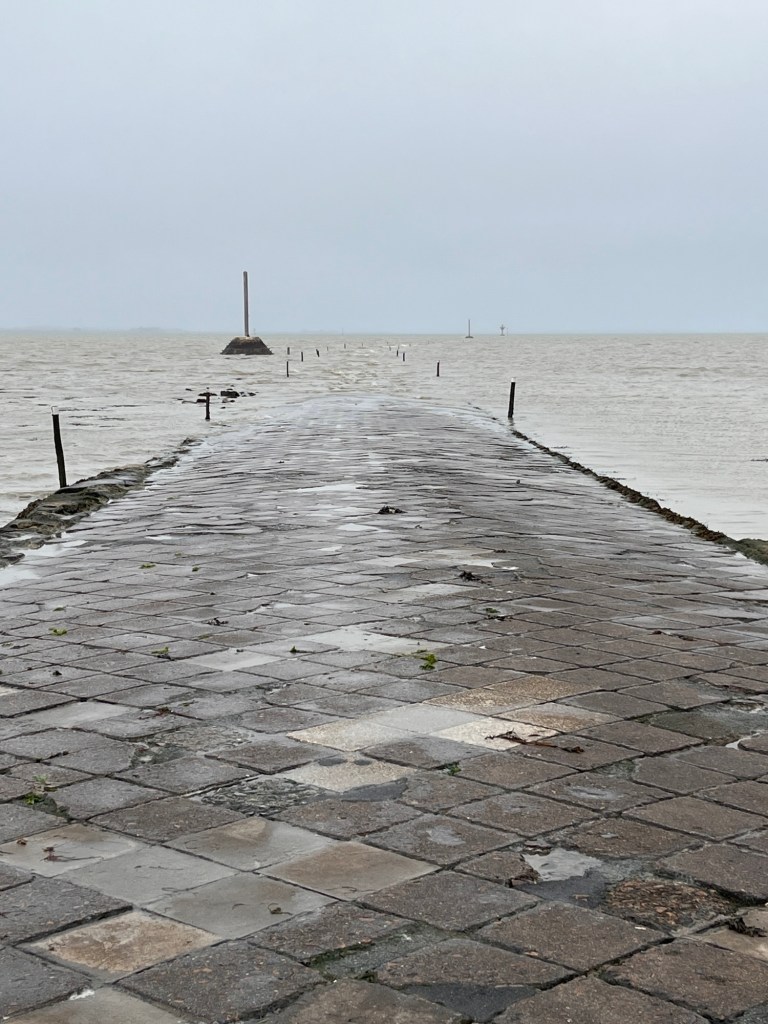 Na obrázku výše je silnice na ostrov Gois, kterou při přílivu zaplavuje voda a je průjezdná pouze při odlivu.