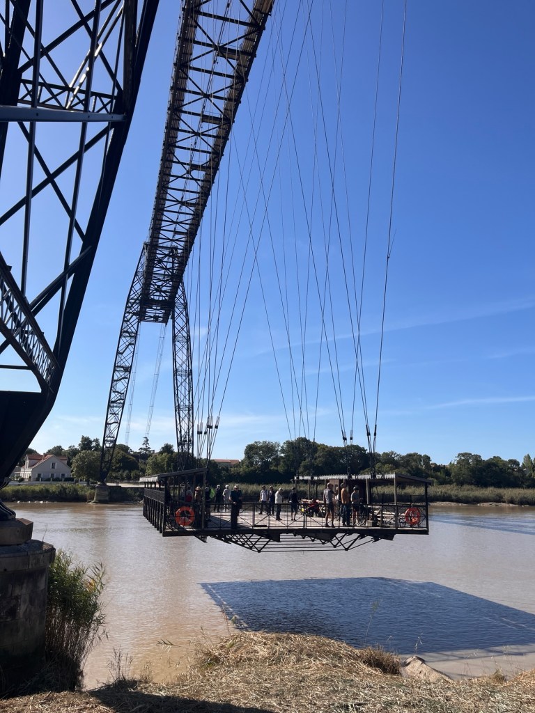 Tak pevnost moc nenadchla, tak si jedeme spravit náladu k technickému mostu v Rochefortu. Slavný visutý transbordér (Pont Transbordeur de Rochefort) – jediný svého druhu ve Francii a technická rarita z konce 19. století. Raritní bylo i jednosměrné jízdné 12€ – přitom takový jakoby přívoz, který visí na lanech a jede jako lanovka.