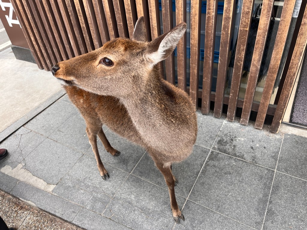 Na ostrově žijí jelínci sika, kteří jsou také posvátní. Myslela jsem, že nejdrzejší tvor je opice, ale ta mi ještě svačinu neukradla. Nerozvážně jsme usedli v parku se svačinou v ruce a v mžiku jsem byla bez svačiny.