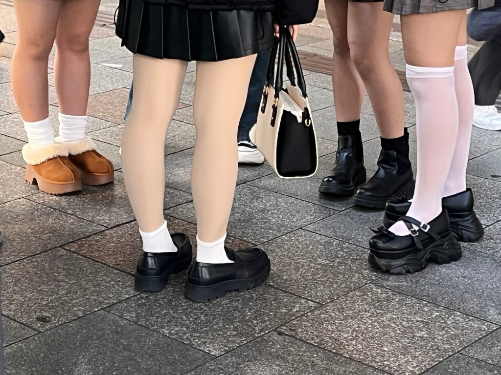 Na ulicích stále vidíte telefonní budky, mladí jezdí na kolech, která pamatují moji babičku, ale v ruce super mobil. Muži chodí většinou v oblecích a mladá děvčata mají holé nohy v zvláštních botkách.