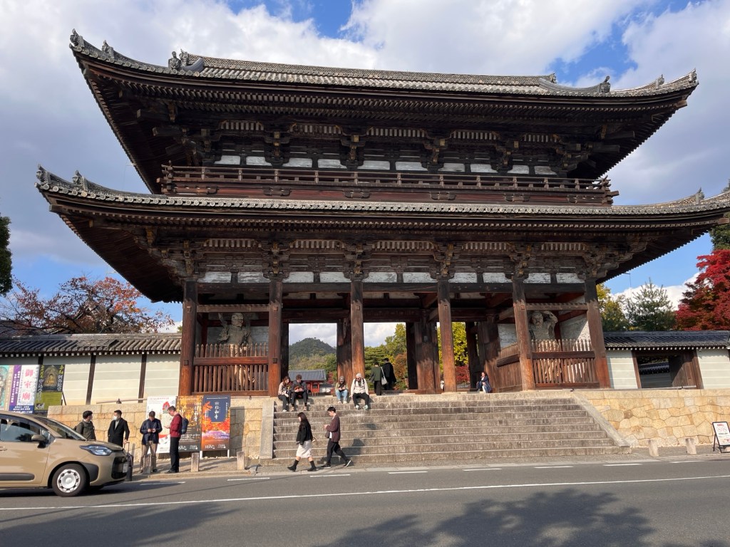 Ninnadži 仁和寺 – když jsme dorazili k tomuto chrámu, zjistili jsme, že široko daleko není co koupit k jídlu. Poté co jsme shlédli, jak mají vstupné rozdělené na 4 části, rozhodli jsme se do chrámu nejít. My celkem na vstupném nešetříme, ale zase nemusíme vidět každý chrám na cestě. V Japonsku nejsou vstupy nijak drahé, ale tady to trochu přepálili. Navíc jsme měli hlad, tak bychom si to ani neužili.