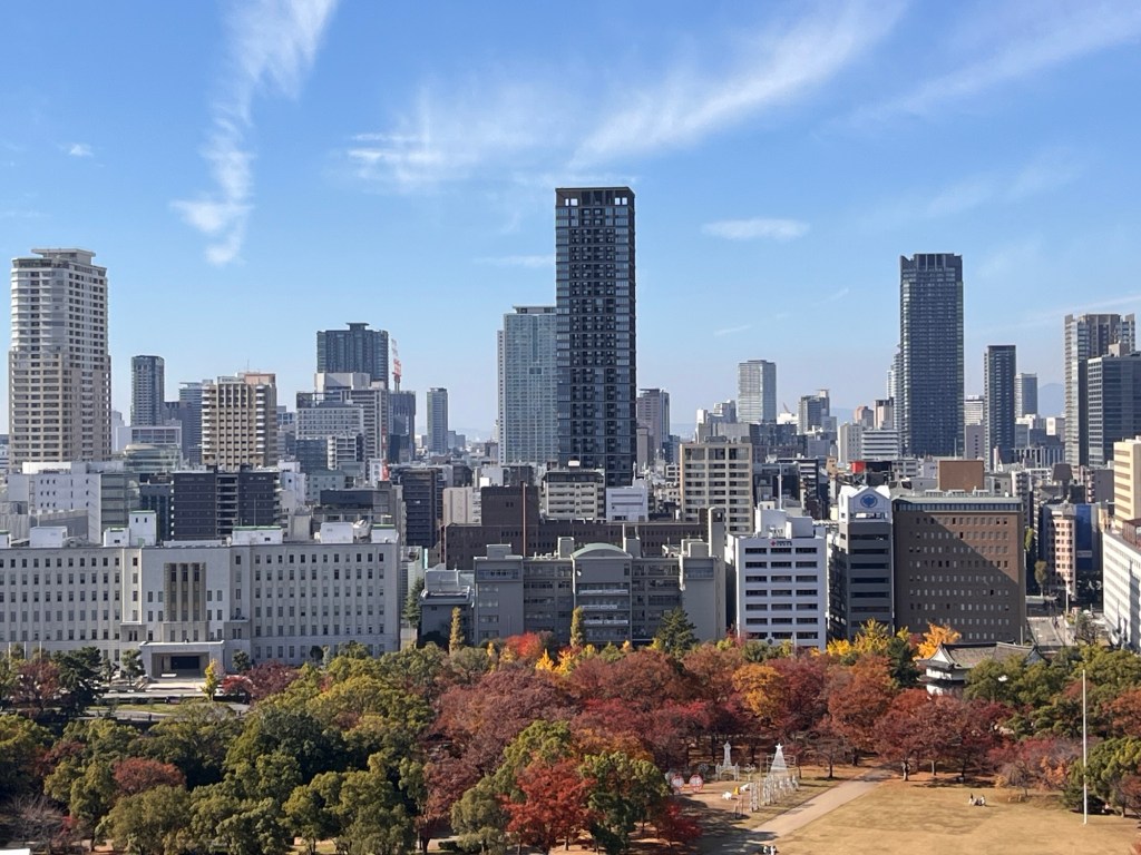 23.11.25 dnešní den jsme si vyhradili na prohlídku Ósaky, města s necelými 3 miliony obyvatel. Začínáme osackým hradem z 16. století. Budova je to krásná, ale uvnitř je to takové strohé, pár samurajských obleků a listiny, vesměs vojenské reporty. Ovšem návštěvnost neuvěřitelná.