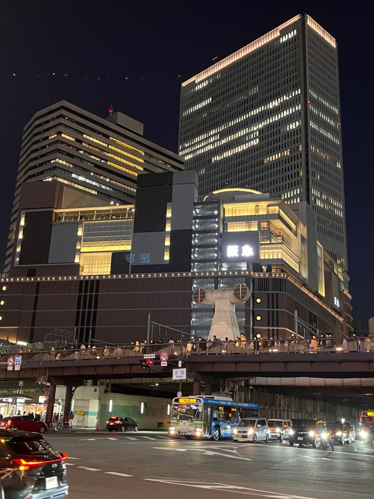 22.11.25 opouštíme krásné Kjóto a cestujeme do místa našeho příletu i odletu Ósaky. Povede se nám vystoupit na jiné zastávce, ale tady naštěstí jezdí vlaky v desetiminutovém intervalu. Dnes toho moc nestíháme, jen malou procházku večerní Osakou.